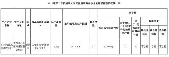 据介绍,本次监督抽查中,广州市质监局抽查了43家企业43个批次的瓶装食用油净含量,经检验,2个批次不合格,均为实物净含量不合格,不合格产品发现率为4.7%;抽查了47家企业47个批次的袋装大米净含量,经检验,1个批次不合格,为标识不合格,不合格产品发现率为2.1%,而实物净含量的不合格产品发现率为0。