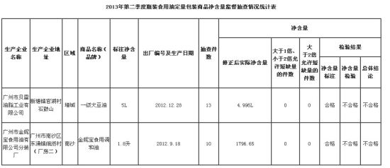 另外记者发现,对比起2012年第四季度的抽检结果中6个批次的大米和4个批次的食用油不合格,今年第二季度抽检产品不合格产品数量相对减少,不合格率也同比下降。